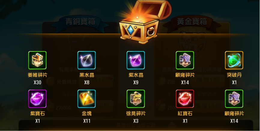           可以在寶箱中抽獎獲得完整的英雄,也可以通過收集碎片在英雄壇中招募英雄;